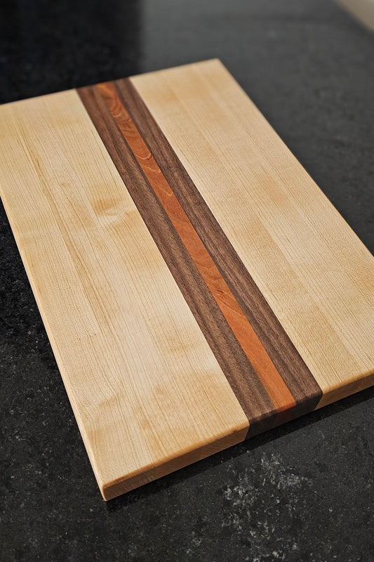 Maple Cutting Board with Walnut & Cherry Inlay – 8.5” x 12.5”